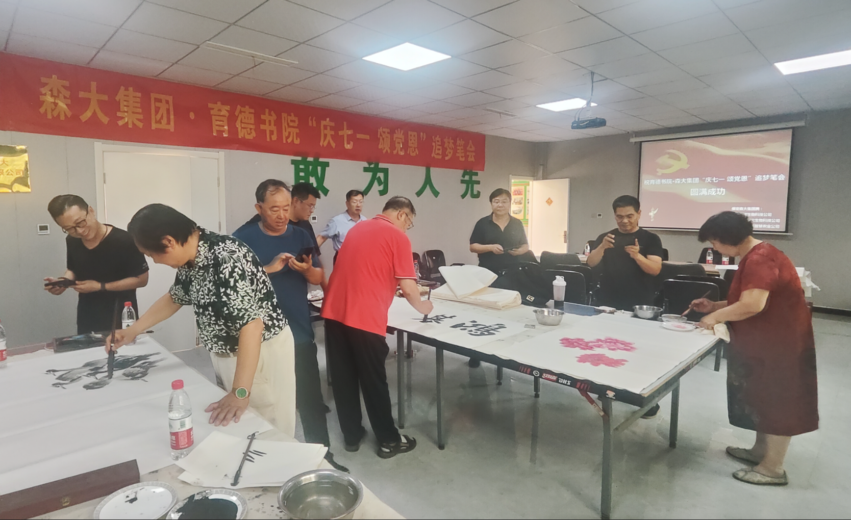 為隆重迎接和慶祝中國共產(chǎn)黨的103歲華誕,6月29日,森大集團(tuán)攜手育德書院,舉辦了一場別開生面的“慶七一 頌黨恩”追夢筆會活動?;顒油ㄟ^書畫創(chuàng)作為七一建黨節(jié)獻(xiàn)禮,同時也展現(xiàn)了森大集團(tuán)作為河北省農(nóng)業(yè)產(chǎn)業(yè)化重點企業(yè)的風(fēng)采、彰顯了育德書院在傳承和弘揚(yáng)中華優(yōu)秀傳統(tǒng)文化方面的深厚底蘊(yùn)。